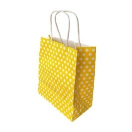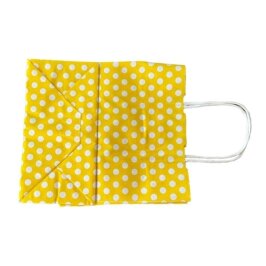 Gelince Haber Ver23x18x10 cm puantiyeli kağıt çanta, e-ticaret, butik satış ve hediyelik paketleme için tasarlanmış renkli ve şık bir ambalaj çözümüdür. Sarı ve beyaz puantiyeli tasarımı ürünlerinize neşeli ve dikkat çekici bir sunum kazandırır.