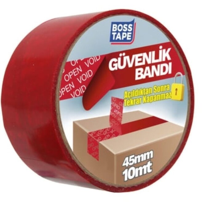45*10 Metre kırmızı koli ve kutu güvenlik bantı söküldüğünde yüzeyde "VOID OPEN" mesajı bırakır. Bu mesaj, bant tekrar kapatılmaya çalışılsa bile açıkça görülebilir şekilde kalacaktır. Güvenlik bantları ürün ambalajlarınızı, paketlerinizi, kolilerinizi ve kutu gönderilerinizi güvence altına alırsınız.