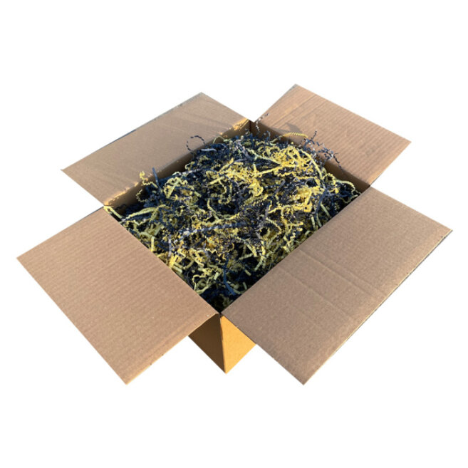 Gelince Haber VerZikzak Kırpık Kağıt Dolgu Malzemesi, koli ve kutu paketleme süreçlerinde yüksek koruma ve estetik sunar. Kağıt gramajı: 80 gr/m², 1. kalite sarı ve lacivert hamur kağıt. Ürün, hamurundan renkli kağıttan üretilmiş olup ithal kalite kağıttır; boyalı kağıt değildir. Bu sayede hem dayanıklı hem de çevre dostu bir dolgu çözümü sunar. Sarı ve lacivert hamur kağıdı, ürünlerin koli veya kutu içinde darbe, sarsıntı ve basınca karşı korunmasını sağlar ve paketlere canlı, şık ve profesyonel bir görünüm kazandırır.